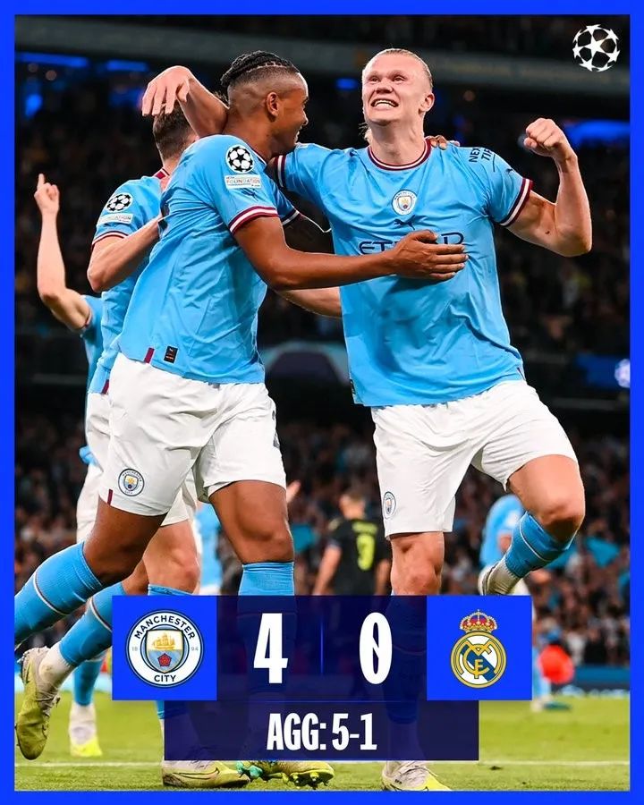 于是,我们看到曼城用耐心的传倒撕碎皇马防线,由B席劲射打破僵局;看到超级蓝月祭出行云流水的配合,再由B席扩大比分;在瓜迪奥拉的弟子们水银泻地的进攻压迫下,米利唐还不慎自摆乌龙,就连刚刚替补登场的阿尔瓦雷斯,也能够在银河战舰的伤口上撒上最后一把盐。