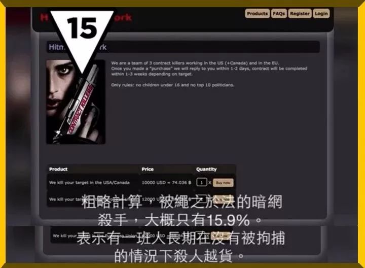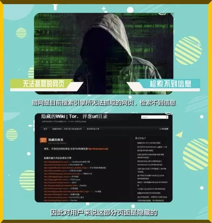 那么“暗网”到底是什么?网络中有一幅大家比较熟悉的示意图:平时我们用的谷歌、百度搜索到的所有信息也好,腾讯优酷奇艺、新浪、YouTube、微博脸书也罢,普通大众所有能搜索到的一切,我们都称为“明网”,大约占网络的4%,是网络的冰山一角;而其余的96%部分则是普通搜索接引擎触碰不到的地方。这里充斥着暗杀、枪支、性、人口交易、骇人癖好等一系列你想象不到的无底线事件和交易,暴露着人性中最暗黑的部分。