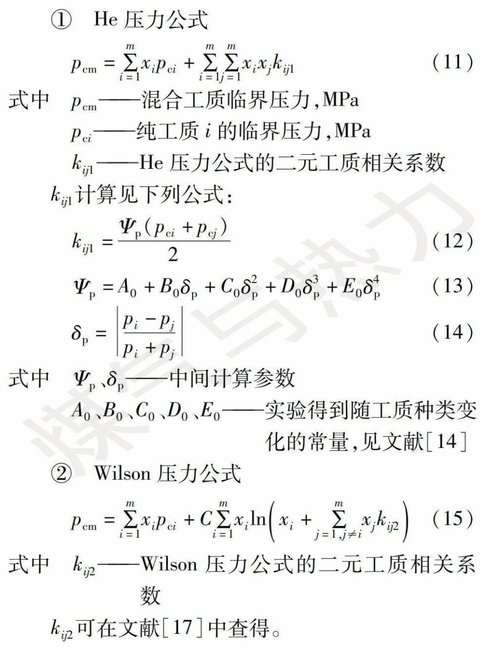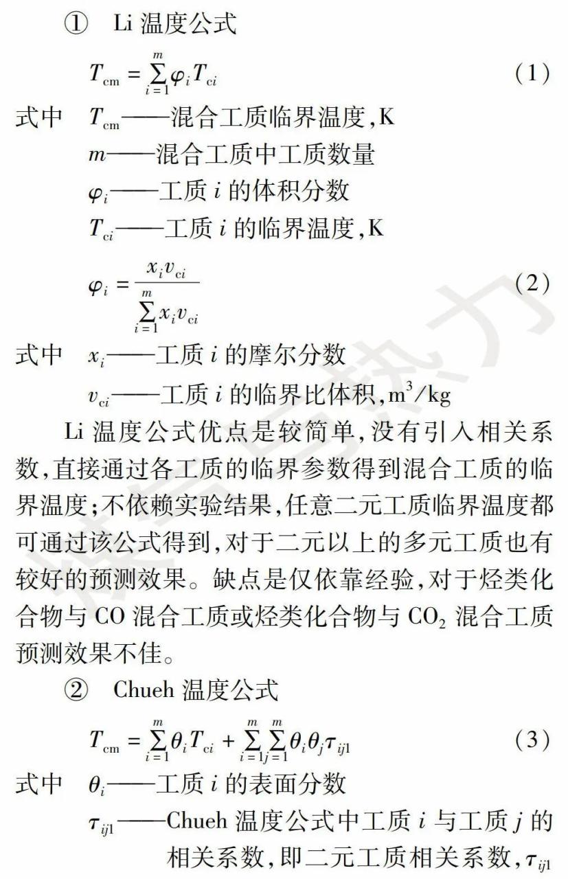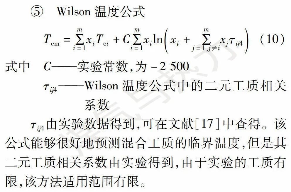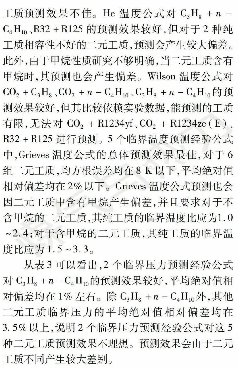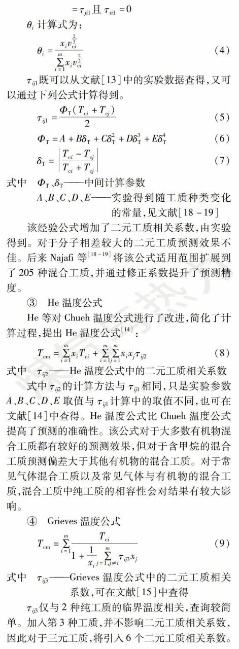 ③在对混合工质临界温度和临界压力进行预测时,应根据工质种类和预测精度要求选择合适的经验公式。