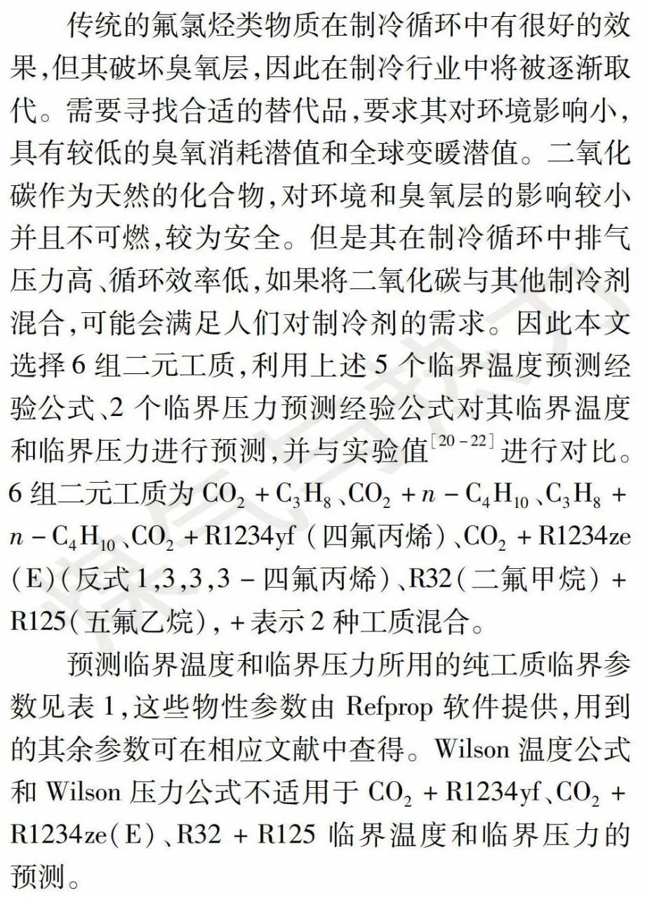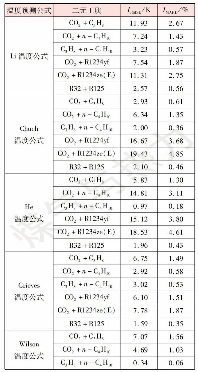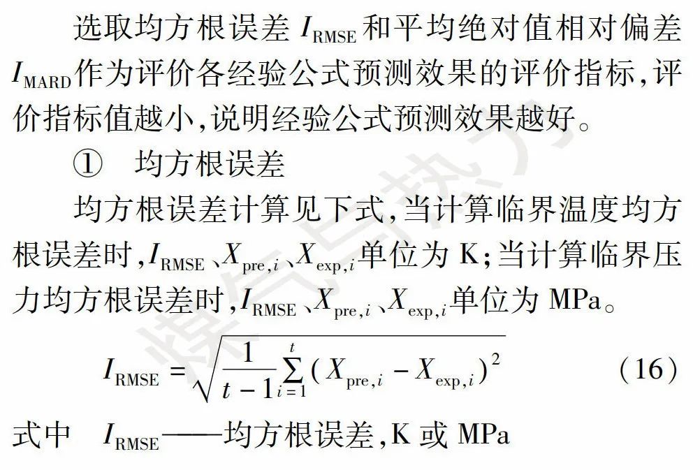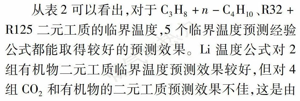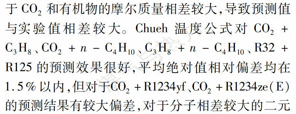 ③在对混合工质临界温度和临界压力进行预测时,应根据工质种类和预测精度要求选择合适的经验公式。