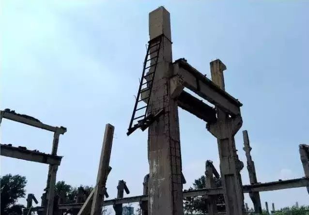 与图书馆遗址一样,铸造车间遗址内也长满了荒草。一根根砧板般粗细的方形水泥柱,被齐刷刷地折断,露出内部张牙舞爪的钢筋。