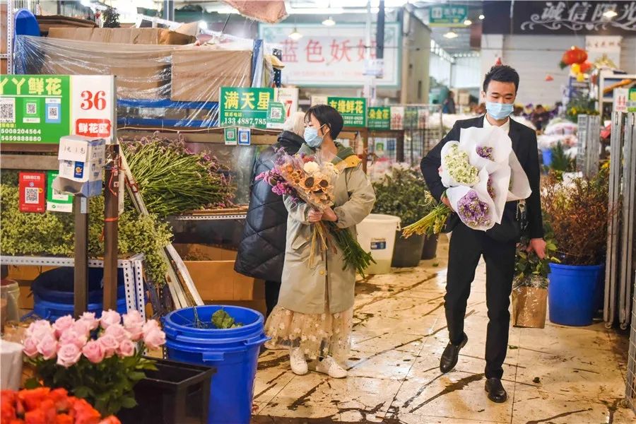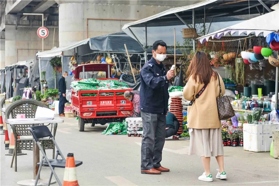 2、现在进入花市不需要证件,戴上口罩就好了,配合工作人员测体温。