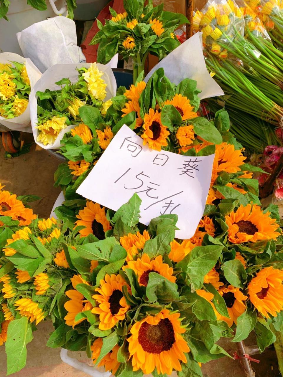 向日葵15元一把,绣球8元一支成都花市,玫瑰20元20朵,小苍兰10元一把,现在还是康乃馨旺季,郁金香、香水百合贵一点25元一把……这些美丽的鲜花真的可以放肆入手。