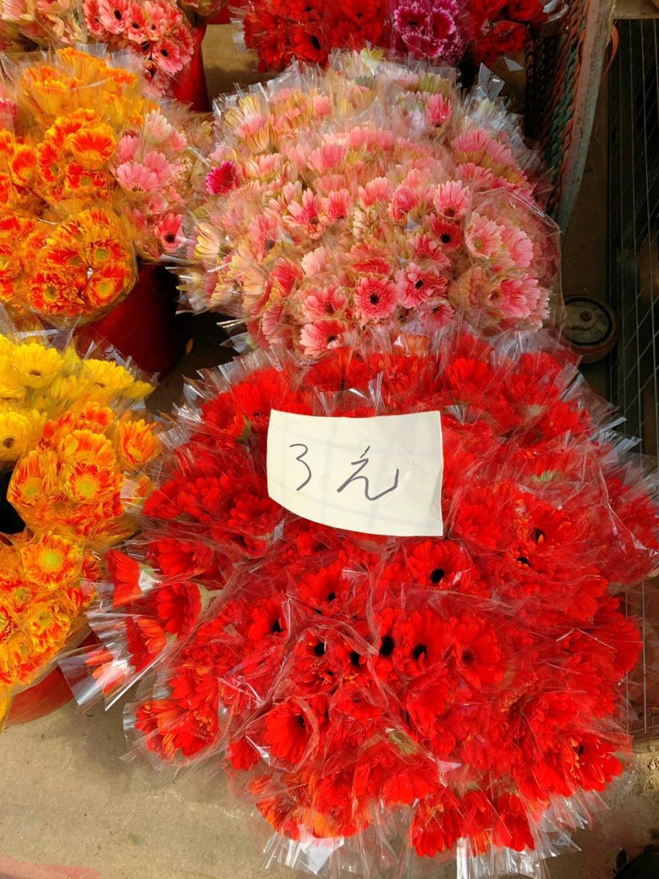 大棚里的鲜花也是惊人的便宜,家门口的花艺店,平时卖5-6块一朵的花,这里都是十几二十几一把!