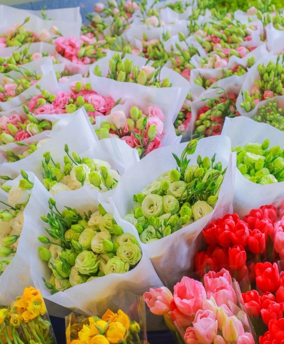 一进去,就看到铁路桥下面挨着的一连串的临时摊位,一家挨着一家,几乎全是卖花的。