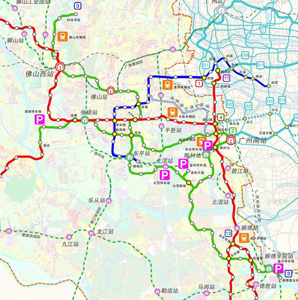 佛山地铁11号线建成后,将成为广佛都市圈又一条南北向大通道。该线路起点位于顺德容桂,止于广州鹤洞东站,将来会与规划中的广州11号线在鹤洞东站交会,同时还会与广州地铁7号线西延顺德段在陈村北实现换乘,进而更好地将顺德、南海和广州荔湾区进行有效串联,加密广佛区域轨道交通网。