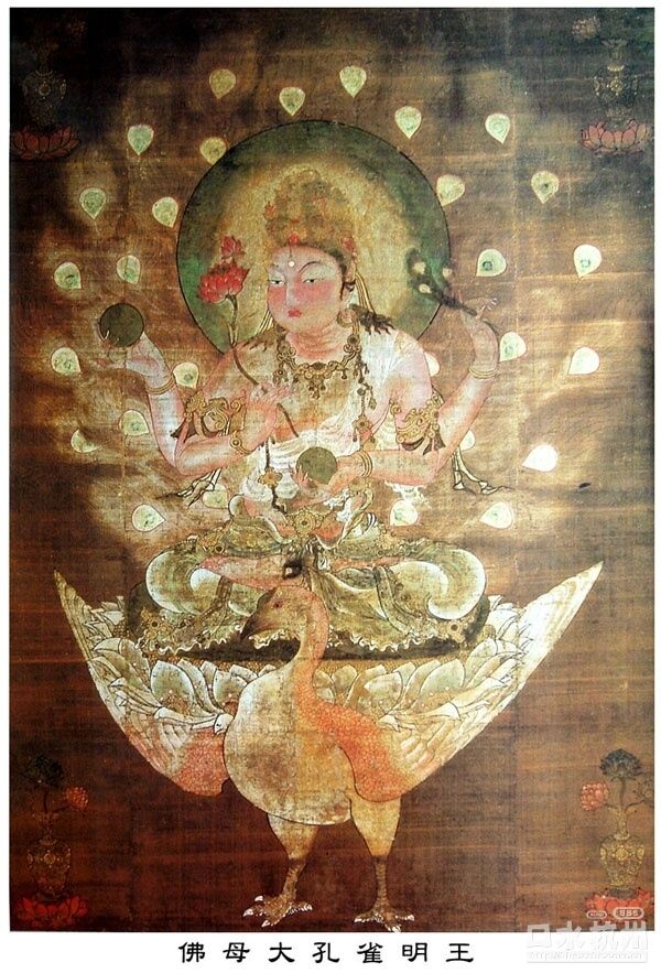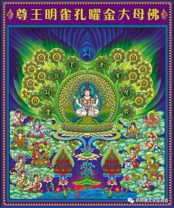 大正藏密教部——《佛母大孔雀明王经》:『佛告阿难,我有摩呵摩瑜利佛母明王大陀罗尼,有大威力,能灭一切诸毒怖畏灾恼,摄受覆育一切有情,获得安乐。』(摩瑜利:孔雀)『佛母大孔雀明王力,能除一切诸毒令毒入地,令我及诸眷属皆得安隐。人毒、人非人毒、药毒、咒毒,如是等一切诸毒,愿皆除灭。令我及诸眷属,悉除诸毒,获得安隐,寿命百年,愿见百秋。』