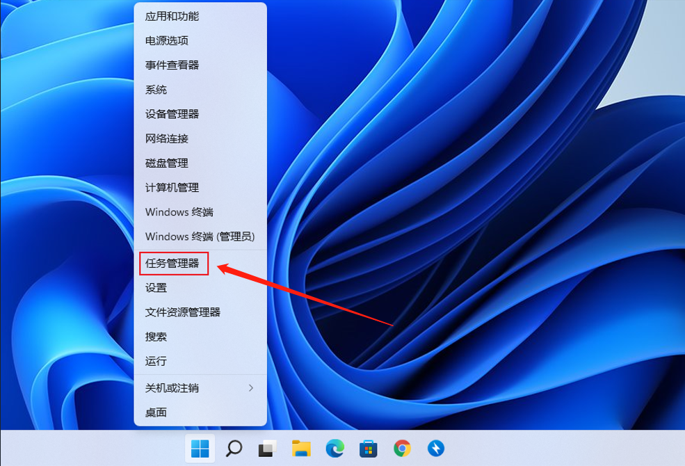 在 Win11 中虽然取消了任务栏右键功能,但保留了 Win10 开始菜单按钮右键功能,鼠标移动到开始菜单按钮上右击并选择任务管理器便能直接打开,相比较第一种快捷键打开方式多了选择这一步,但仍然十分方便。