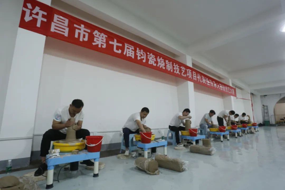 6月6日,“名师出高徒”许昌市第七届钧瓷烧制技艺项目代表性传承人授徒技艺大赛在禹州市神垕钧瓷工业文化园隆重举行。此次活动由河南省非物质文化遗产保护和智慧化中心、许昌市文化广电和旅游局主办,禹州市文化广电和旅游局、禹州市非物质文化遗产保护中心承办,禹州市非物质文化遗产保护协会、禹州钧瓷博物馆、禹州市神垕镇孔家钧窑有限公司协办。来自全市钧瓷行业各个窑口的骨干力量和各级传承人40余名拉坯高手,在各级领导和专家评委的检阅见证下,展开切磋技艺、交流经验。