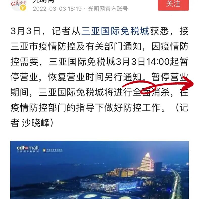 记者了解到,目前三亚4家免税店已全部恢复营业。为给广大消费者营造舒适、安心的购物环境,各门店将严格按照防疫要求开展卖场安全消杀、检查工作,严格落实所有员工持24小时核酸阴性证明复工。同时,提醒进店顾客需佩戴口罩,主动出示健康码、48小时核酸阴性证明,配合测量体温,保持一米间距等常态化防控措施。