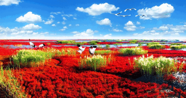 上午10:12抵达锦州后乘车前往观看全球保存最完好、规模最大的湿地资源天下奇观【红海滩国家风景廊道】(车程约1小时,游览时间大约为2-2.5小时),满眼红滩尽染退潮后被誉为海上“红地毯”,百万亩红火的碱草与碧绿的芒苇织就的天赐风景,仿佛置身在童话世界里,这里鱼肥蟹美,稻米飘香,海鸥与抽油机为伴,红海滩与丹顶鹤相映,现代文明与原生文明共生,与数以万计的珍稀水禽和一望无际的浅海滩涂构成了一条生态风景廊道。
