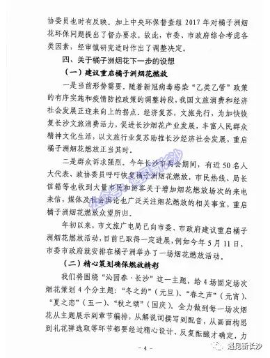 年初以来,市文旅广电局已向市委、市政府建议重启橘子洲烟花燃放活动,目前已取得一定进展,例如今年5月11日,市委市政府就安排在橘子洲举办了一场烟花燃放活动。