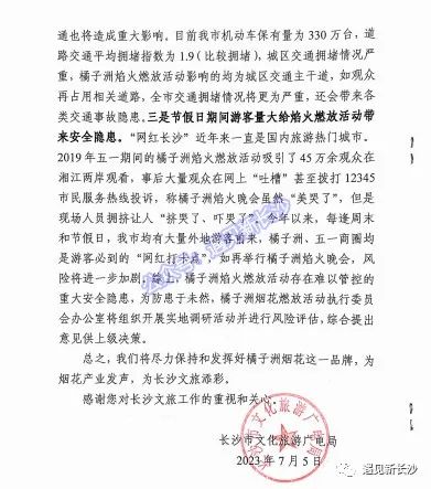 对此,长沙市政府高度重视,交由长沙市文旅局主办,市公安局、市财政局、市生态环境局、市应急管理局等会办。