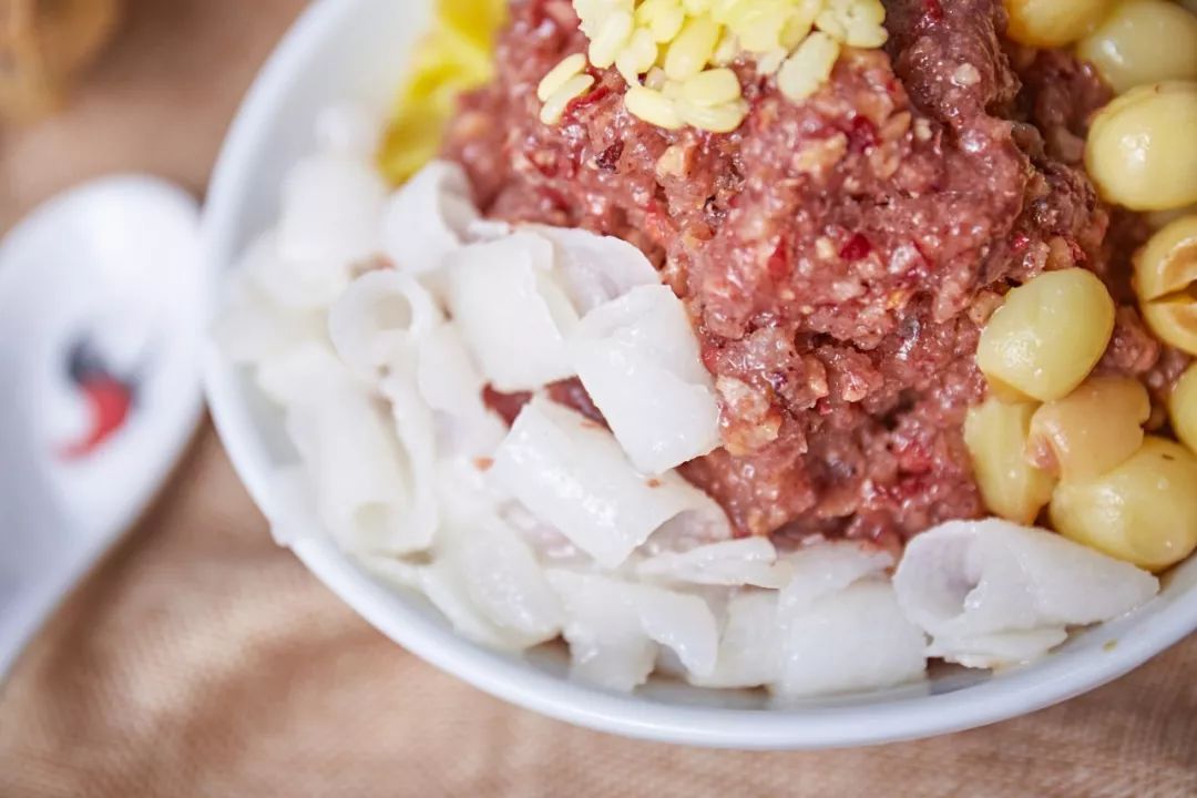 还有红豆、莲子、白果和豆浆的多重甜蜜撞击味蕾,清凉感瞬间从口腔传遍全身,嘶——好爽!