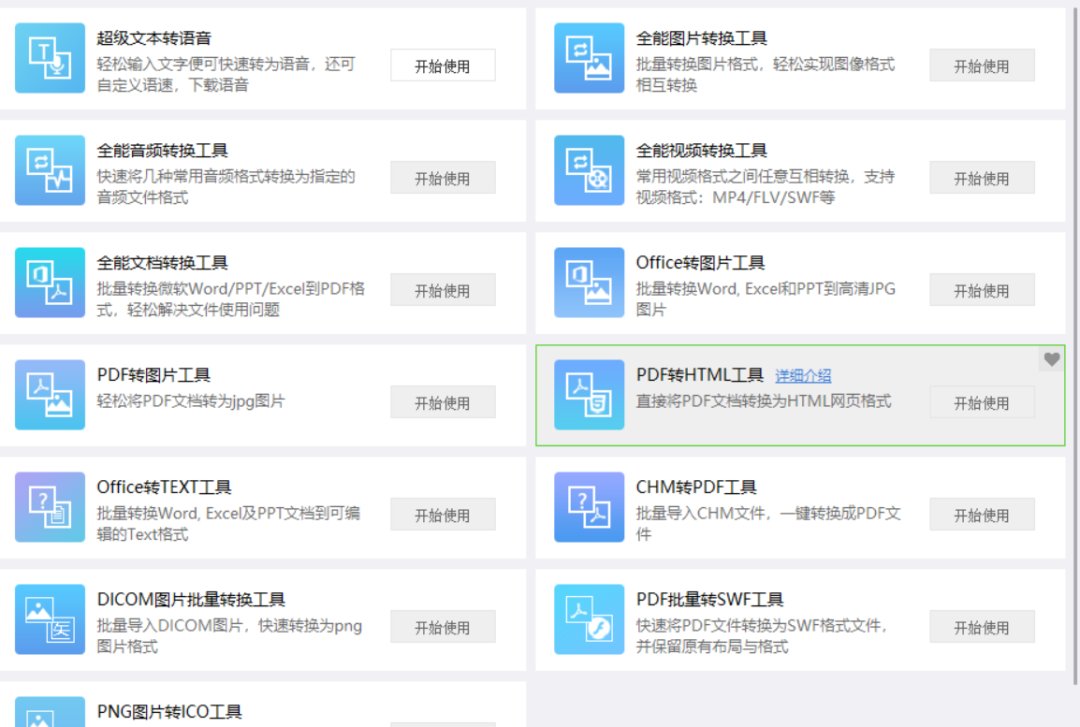 格式转换工具集包含图片、文本、语音、视频等各种格式间的转换。