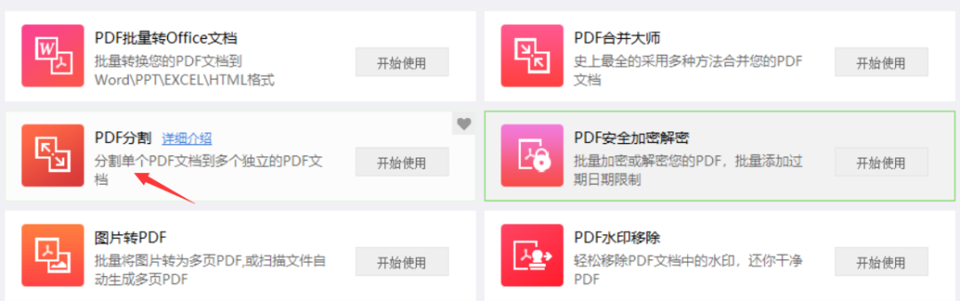 1、单击所需用到的工具。以“PDF 分割”为例。