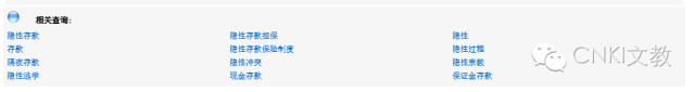 相关搜索这部分在检索结果页面的最底部,系统根据相关算法与大数据技术给出了与被检索词相关的若干词条。相关搜索词条的推荐,能有效扩展知识的关联与帮助你开阔学术思路。