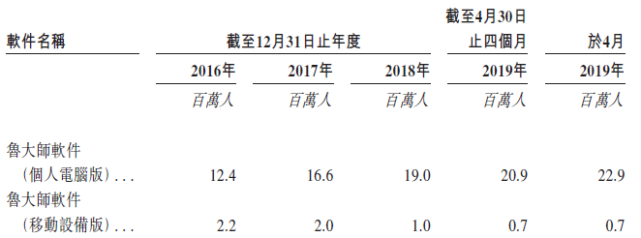 但是,这并不代表安兔兔和鲁大师的处境会一直乐观下去。以鲁大师为例,招股书显示,移动端鲁大师软件月活用户逐年下滑,且目前为止并没有止住的迹象。2016年其月活为220万,2018年为100万,2019年4月份仅剩下70万。