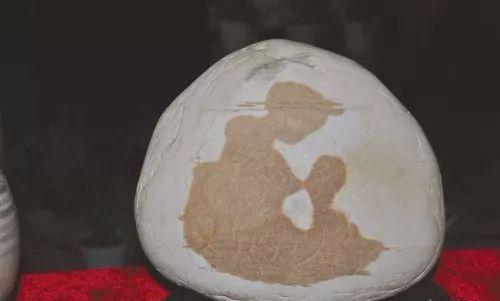 这块奇石名为“哺育”,该石头纹理生动形象,表现了一位母亲正在给孩子哺乳的情景,表达了母爱博大的主题。