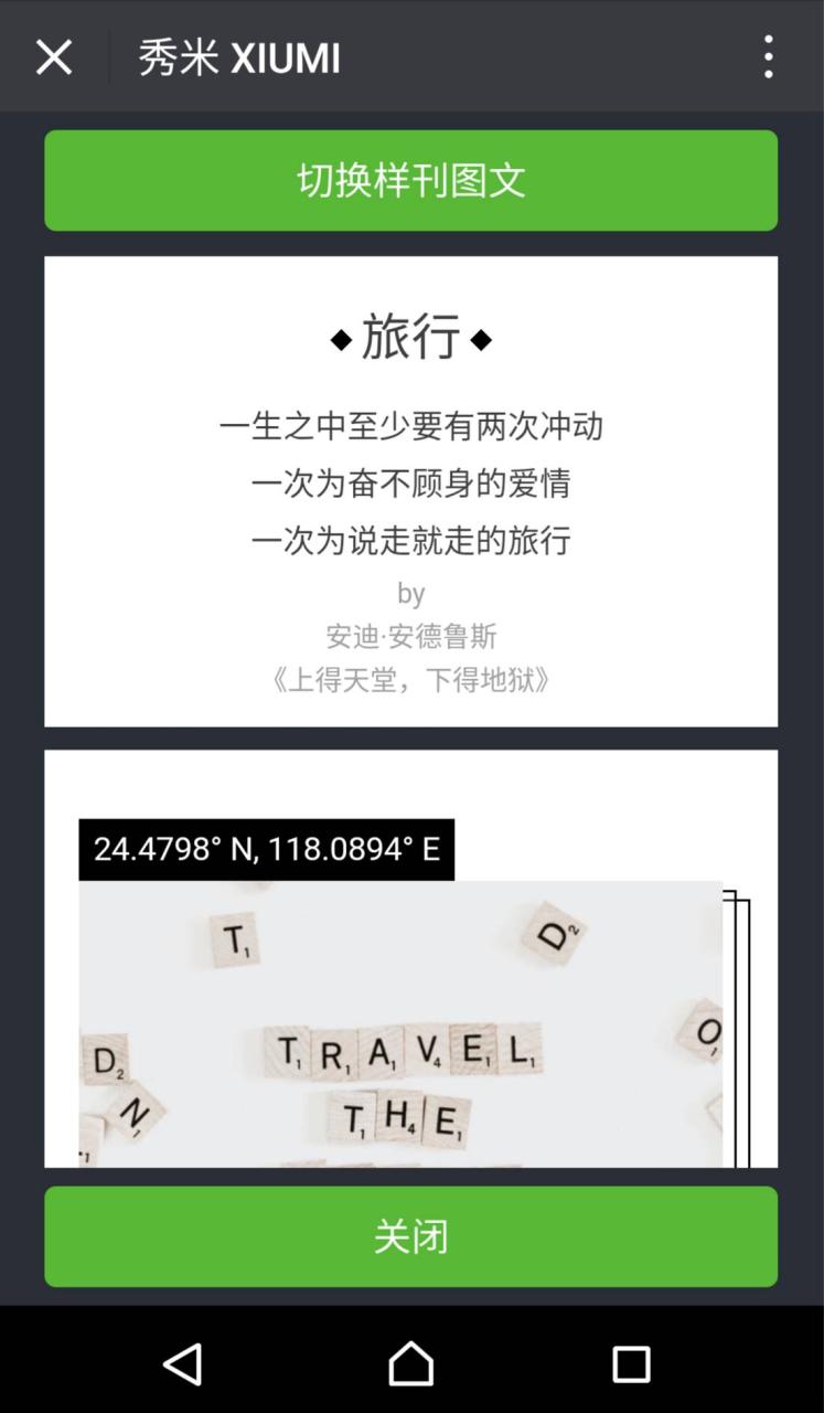 我们制作好样刊模板后,这时候我们打开手机,进入秀米微信公众号,点击底部菜单中的手机版……