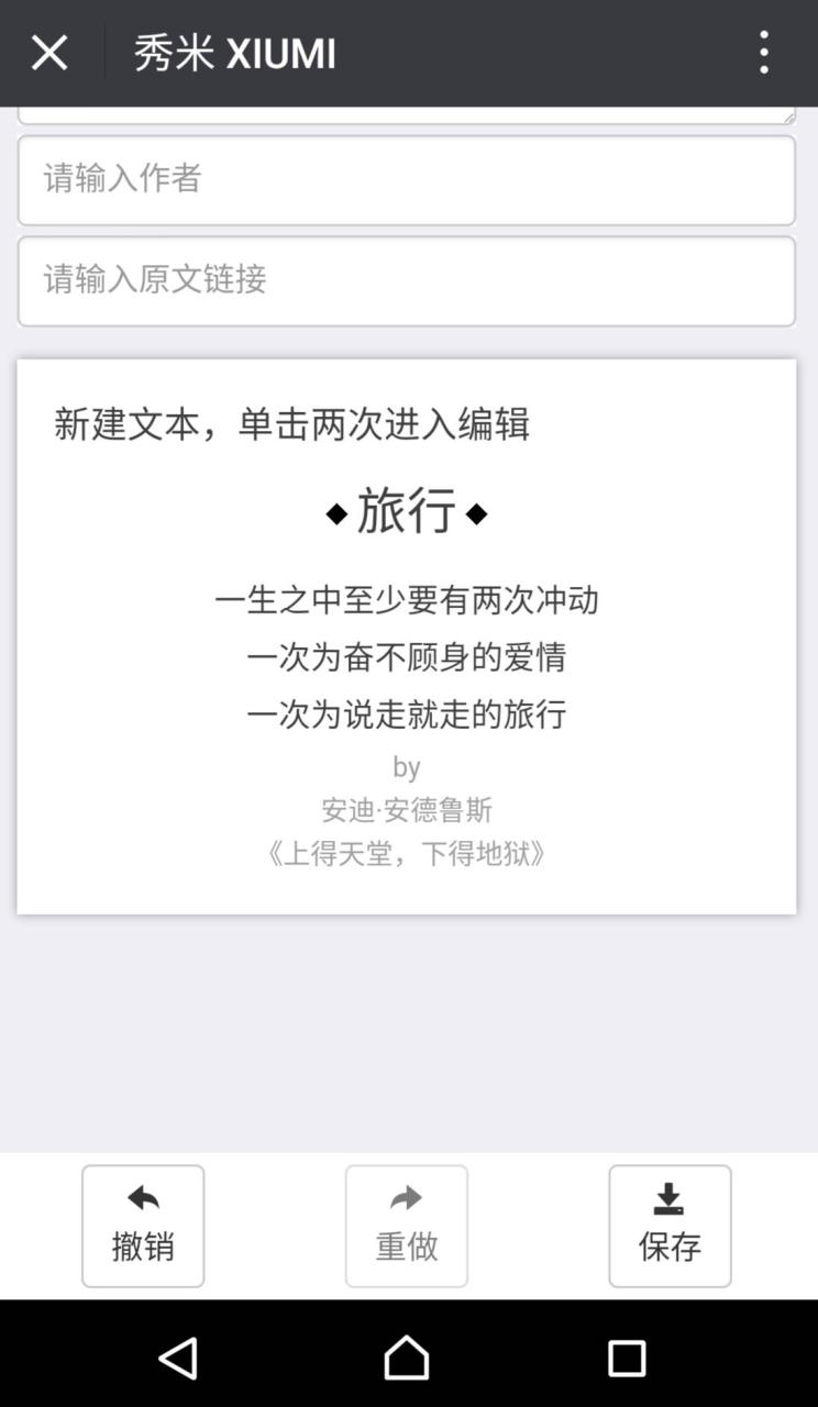 如果是需要直接添加新的内容,可以双击两次文本输入框,进入编辑;但这样只能创建一篇简单的图文,无法使用秀米的模板。