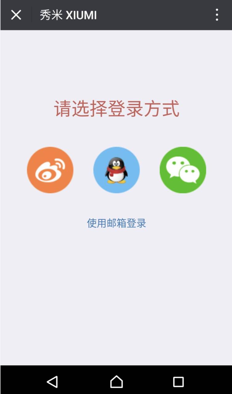 另外,秀米手机版登录方式,我们也做了调整。如果你已有一个秀米账号,且之前没有登录过手机版,就会显示登录页面,可以用微博/QQ/微信/邮箱登录;