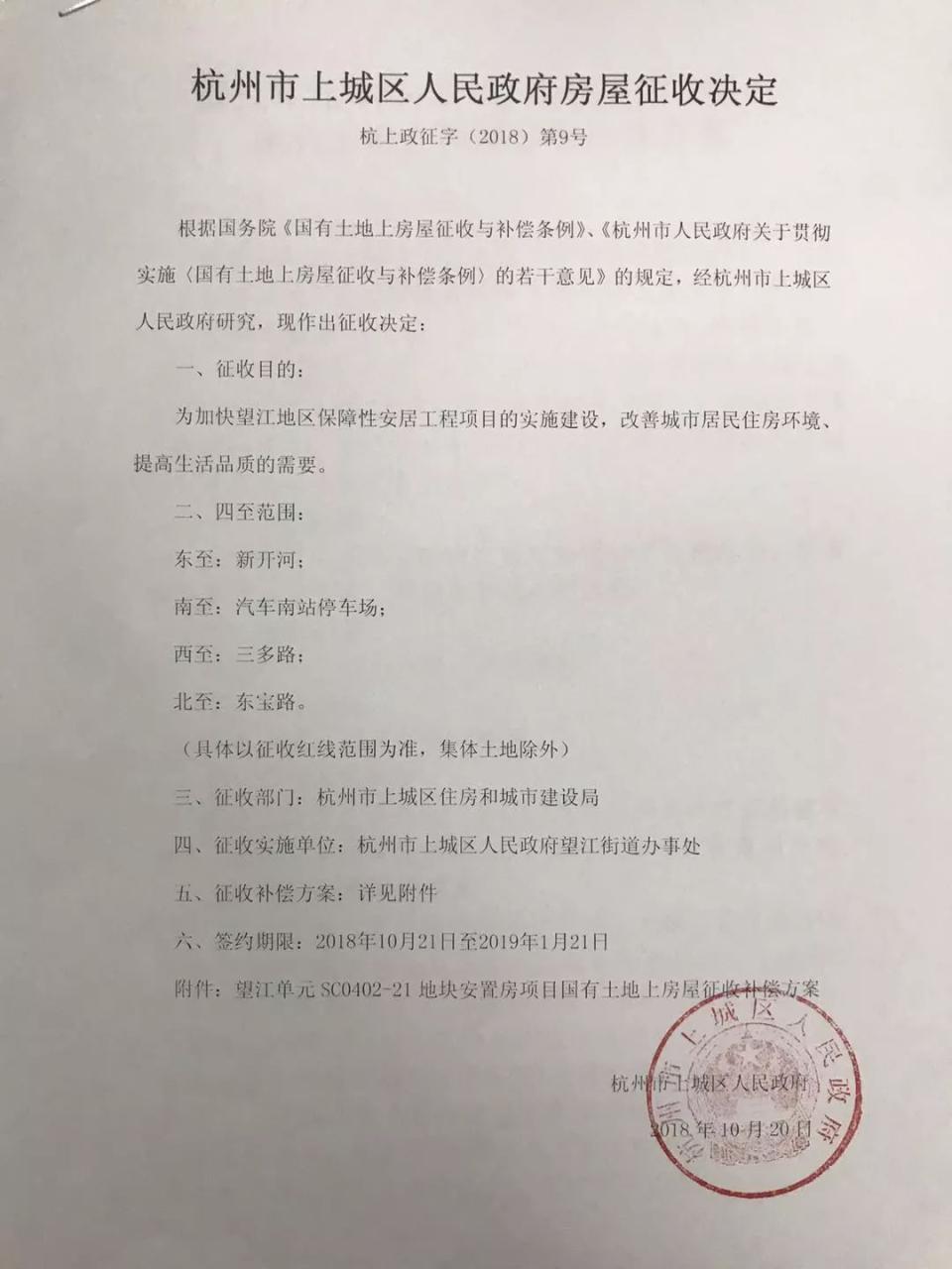 公告指出,为加快望江地区保障性安居工程项目的实施建设,改善城市居民住房环境、提高生活品质的需要,上城区政府作出征收决定,房屋征收范围为:东至新开河,南至汽车南站停车场。西至三多路,北至东宝路。