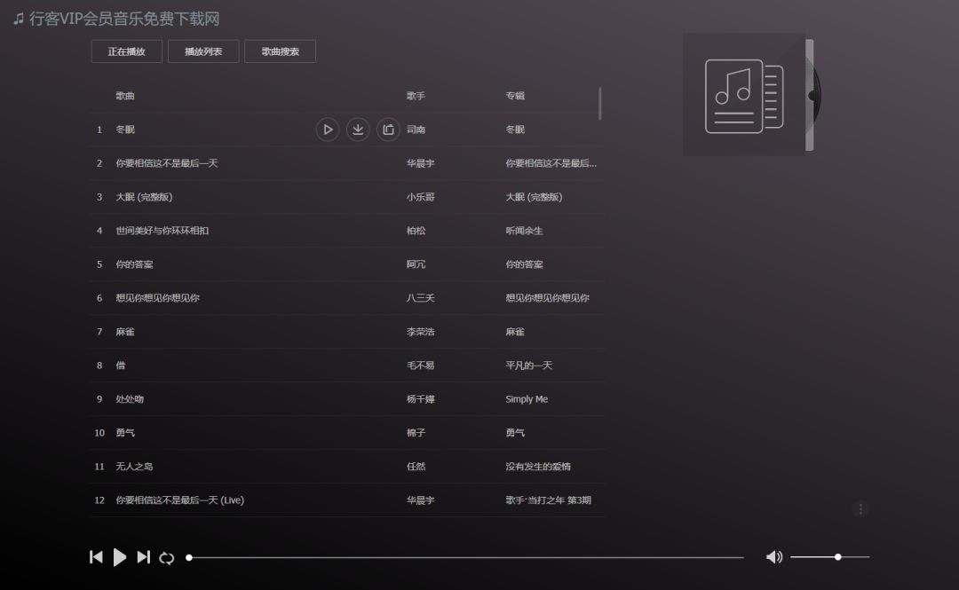 一个可以在线试听兼下载的音乐网站,只支持默认的音乐品质下载,需要试听一下才能进行下载。