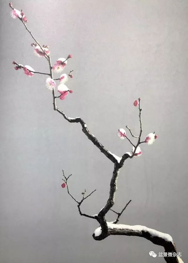 按照这个标准梅花盆景,改作时经过反复推敲,确定保留原有的主线,对其余枝条大刀阔斧删繁就简。