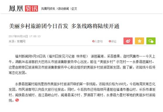 美丽乡村旅游首发团活动也引起了媒体的广泛关注:
