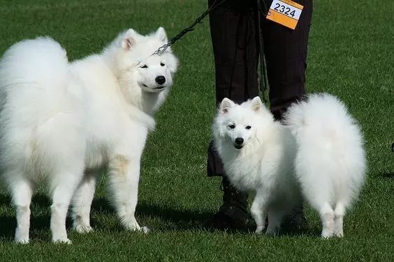 肩高:公:30-38cm,母:30-35cm;体重:约10kg。体格强健,颈部肌肉发达,宽胸、宽腰,背直而有力。脚圆,趾间有丰满的饰毛,尾巴有羽须卷至背部。蓬松、丰厚、纯白的被毛非常美。整体具有一种均衡之美,营造出这种狗独特优雅的气质,非常可爱。
