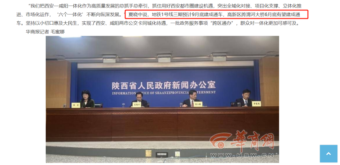 4月25日,咸阳官方在会议上明确提到,地铁1号线(三期)计划2023年9月底左右开通运行,高新区跨渭河大桥6月底有望建成通车。