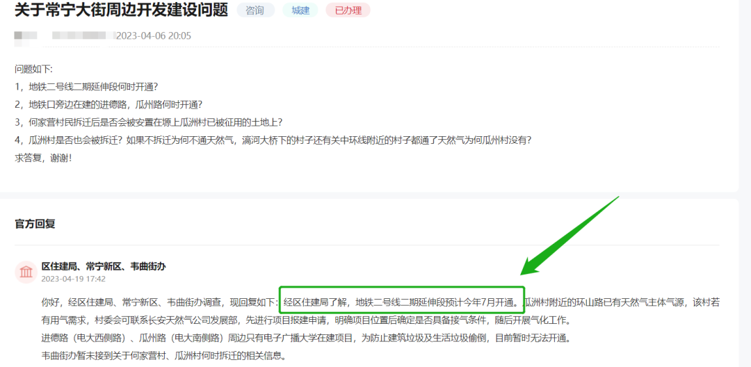4月19日,官方明确回复,地铁2号线(二期)预计2023年7月开通;今年3月上旬进入空载试运行阶段,目前各站装修施工已近尾声。