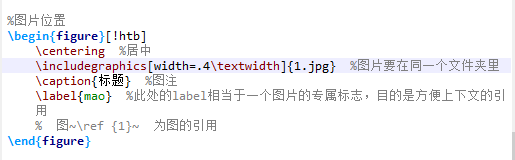 看如下例子,图片环境是figure,后面“[!htb]”与表格相同,也就是说figure环境同样是浮动的,这在论文排版的最后,要注意图片的位置,很有可能图片的位置离你想要的位置很远,这个时候,你需要进行微调,比如缩小图片的尺寸。