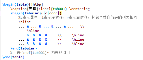 begin{center}..end{center},居中环境,表示表格居中,另外只要将{}里的代码改成left、right可相应的设置成左对齐、右对齐。
