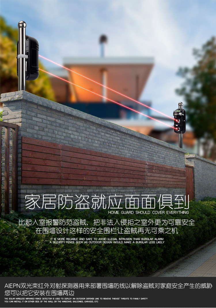 2、在室外使用时一定要选用双光束或3光束主动红外线报警器,以减少动物、 落叶等引起系统的误报警。