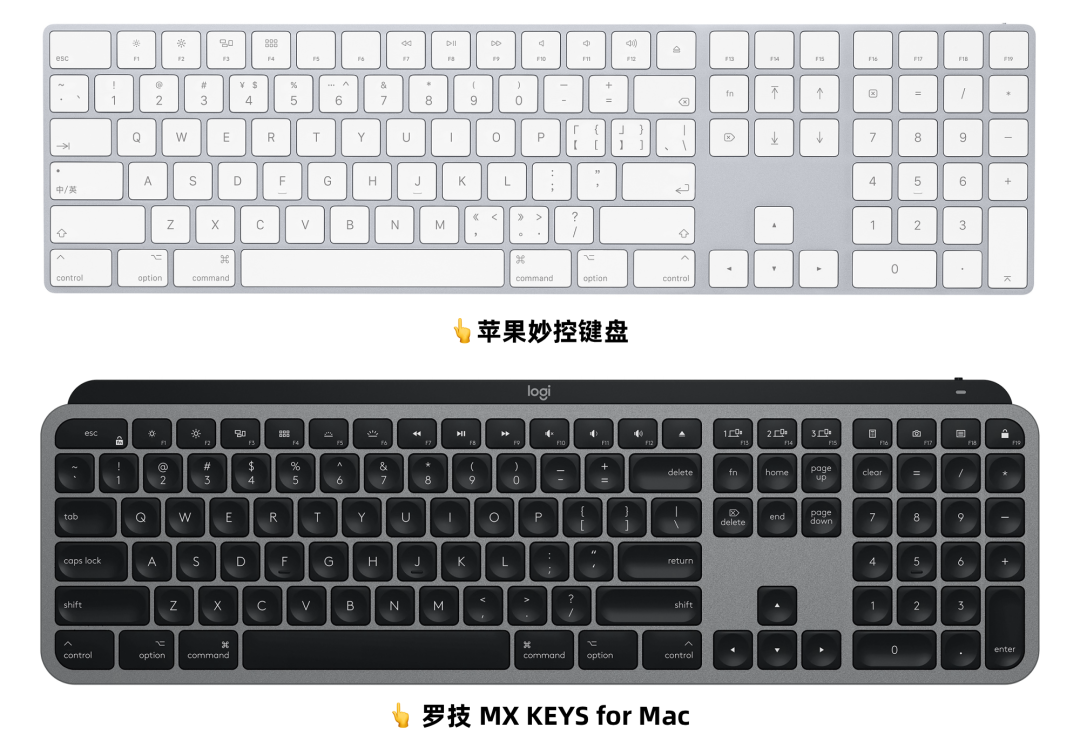 不仅如此,MX KEYS 的键位功能在某方面甚至比苹果原厂键盘更好用。