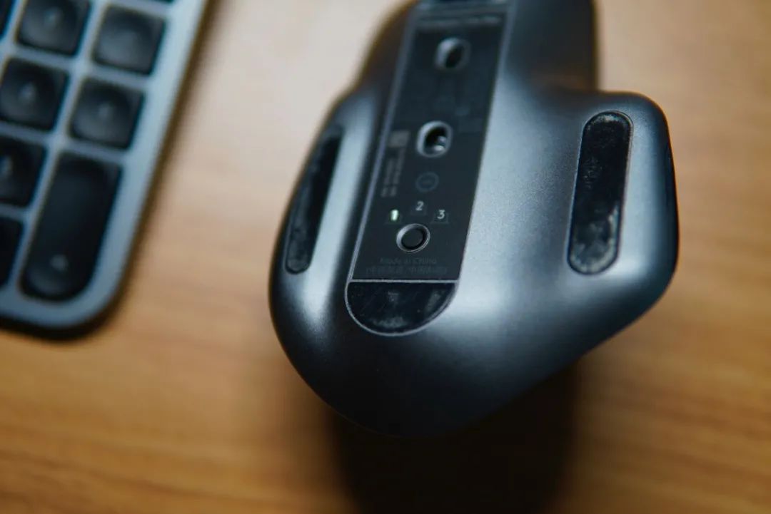 跟 MX KEYS 键盘一样,这款鼠标同样也是 USB-C 充电、同样支持蓝牙+接收器双模连接方式,并且一样可以快速切换三台设备。