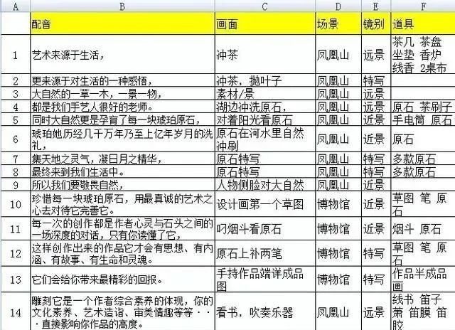 某些多场景视频还要设计拍摄地址,脚本的范式,大概是这样的:
