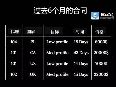 据称这个网站的业务模式为提取杀手5%的佣金,但杀手有权设定自己的要价。下方表格为杀手过去半年履行的合同。