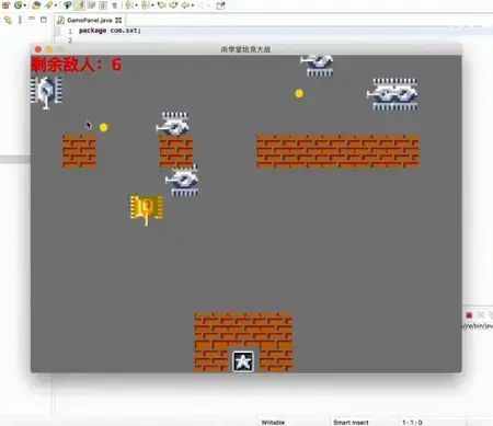 本课程讲解了一个坦克大战游戏的详细编写流程,即使你是刚入门java的新手,只要你简单掌握了该游戏所需要的javase基础知识,便可以跟随教程视频完成属于你自己的坦克大战游戏!同时还可以加深和巩固你对面向对象知识的理解;