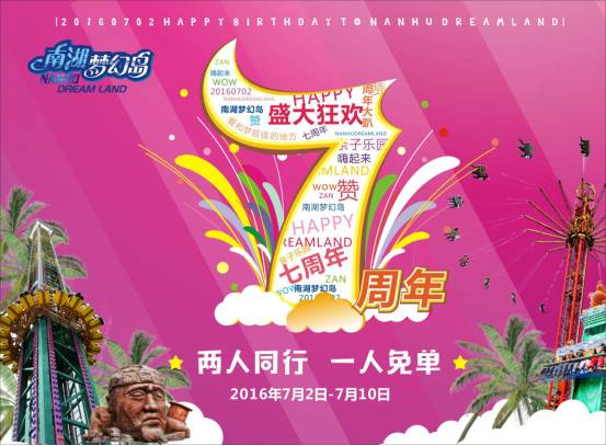 2016年7月2日,南湖梦幻岛成立七周年暨嬉水乐园开园庆典将在梦幻岛南大门旋转木马旁如约举行。终于等到你,我从未想过要放弃!是不是很开心,是不是很喜庆,是不是特别值得普天同庆被铭记?