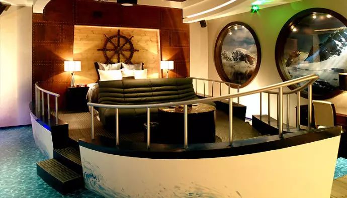 在台北坎城,有家时尚旅店提供42种电影主题套房,将电影情境与房间设计整合,以房间的整体造型取代移动式家具设计,每个细节都是独一无二,一房一意境,其中典型房如以下: