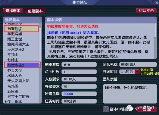 第三组就是石猴授徒和前世今生二这两个副本任务了,这两个副本任务都是奔着物品奖励去的,石猴授徒副本任务可以产出五宝、特赦令牌,还有兽决的奖励,对于五开来说这是不能错过的副本任务;