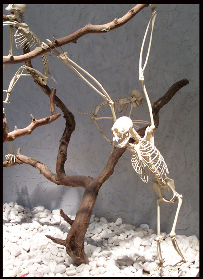 东北林业大学野生动物与自然保护地学院退休教师 王槐:肯定是个猴子,是灵长类的,眼窝特别大,其它动物没有这么大眼窝。它的后肢趾骨特别长,猫科动物都是梅花形的爪子,所以说它的趾骨非常短,它的门齿、犬齿、臼齿都很发达,这是符合杂食性动物特征的,整个胸部外面像皮似的,但是仔细看它不是皮,是布。