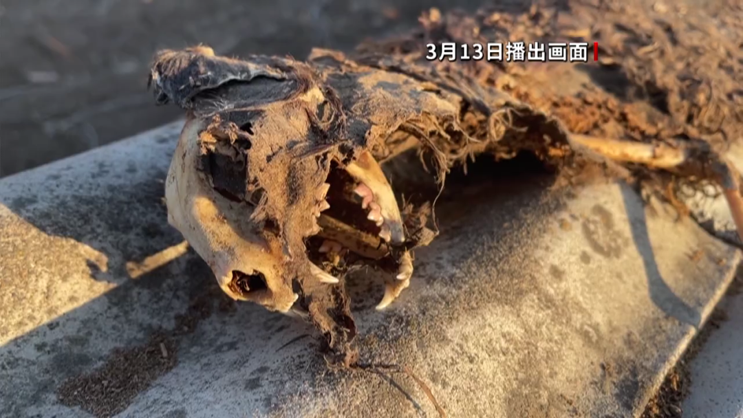 伊春市野生动物保护协会秘书长 丁全志:(第二副骨架)我觉得像狗,因为骨头不全,光有头骨那部分,我觉得还是像狗。