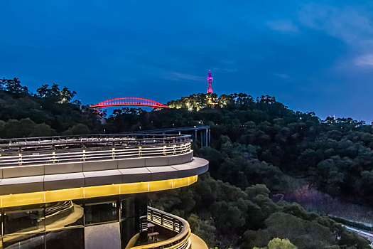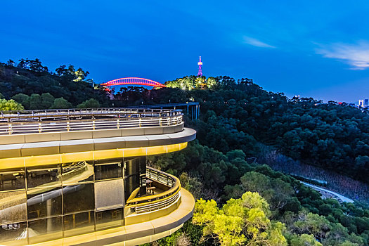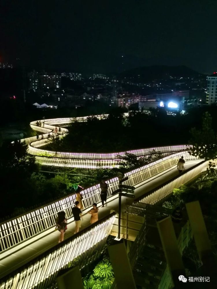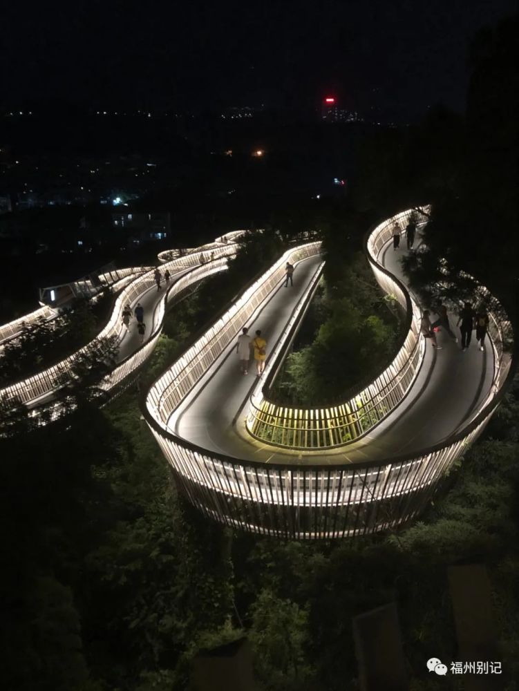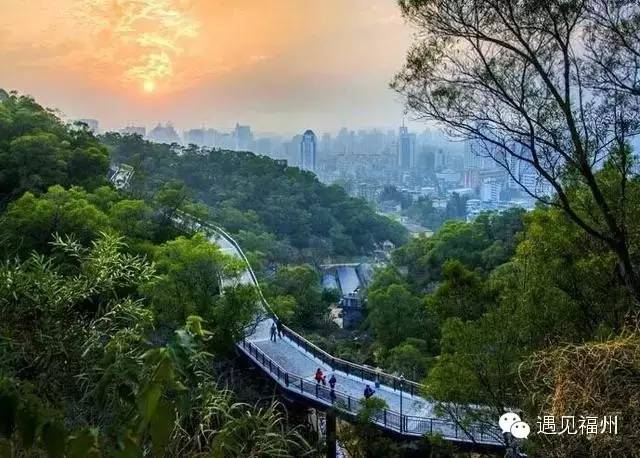 金鸡山栈道是目前福州市区最长的高空览城观景栈道,登高远望福州涌泉寺,榕城美景可尽收眼底。从金鸡山木栈道上可以俯瞰福州美景,栈道犹如高架桥穿行在山中,长长的金鸡山览城栈道,环山蜿蜒而设,几无陡坡,可在其间悠然自得地散步。