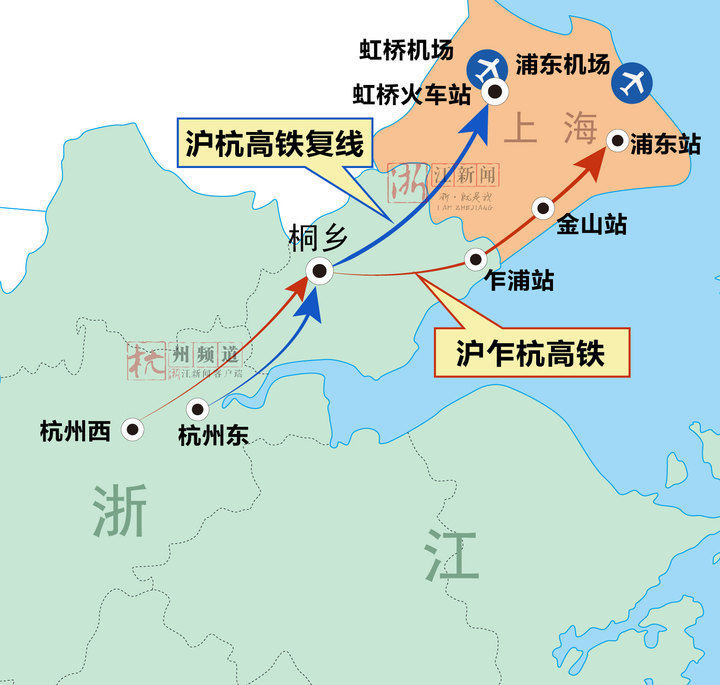 但是,从杭州去浦东机场,要先到上海虹桥再坐上海的地铁,不太方便。沪乍杭高铁建成后,从杭州西站或萧山机场站,就可以坐高铁直达浦东机场。