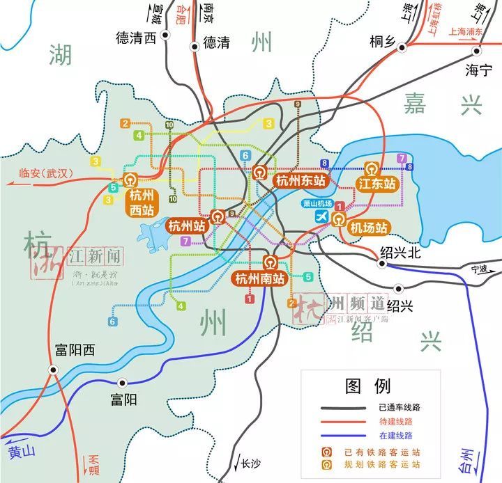这些高铁建成通车后,杭州将通达上海、南京(北京)、合肥、黄山、武汉、南昌、温州、台州、宁波等9个方向,到达很多城市的时间将大大缩短。