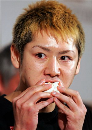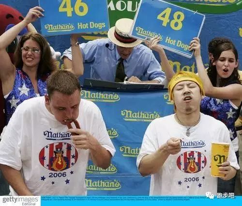 目前位居「国际大胃王竞技联盟」第一名的日本人小林尊,已经连续6年赢得在纽约举办的世界热狗面包快食比赛冠军,他的纪录是12分钟内吃下53又3/4个热狗面包,连嗜吃热狗的美国人都望其项背。